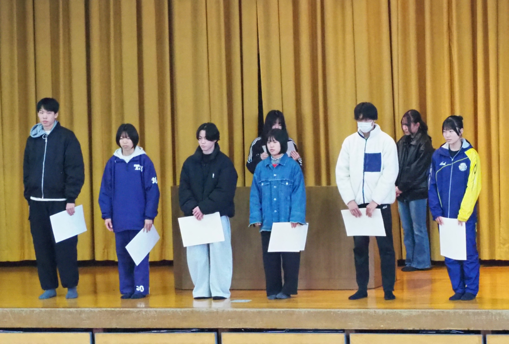 終業式に先立って行われた表彰伝達式では、クラブ・個人で活躍した生徒が表彰されました。